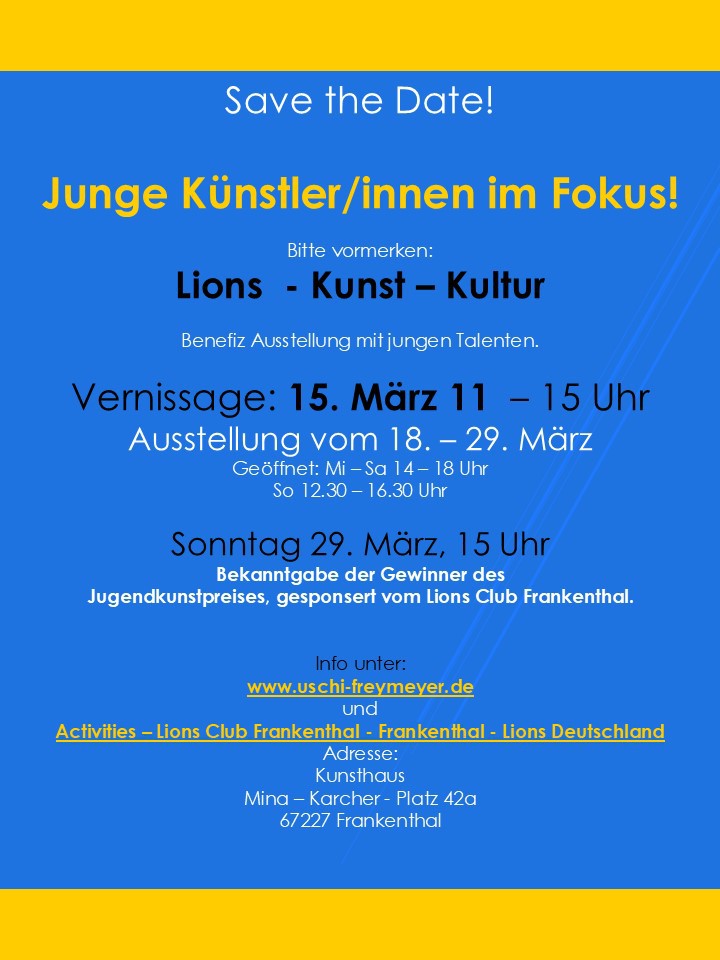 Diese Plattform ist hauptsächlich für junge Künstler und erstmals wird der Lions- Jungendkunstpreis vergeben.